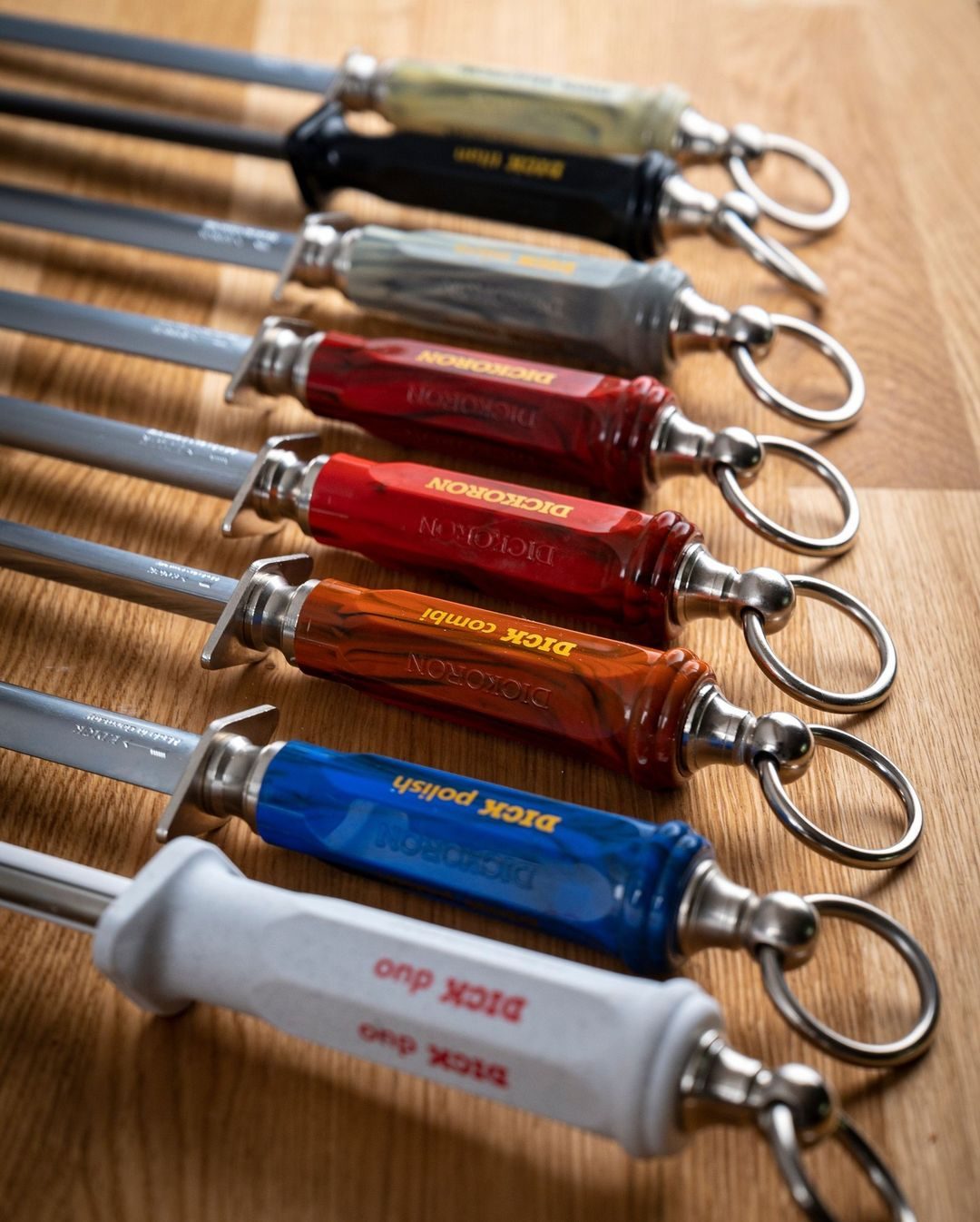 DICKORON sharpening steels feature a special sapphire cut that provides velvety-soft honing. Available in round and oval shapes with a 30 cm blade length, DICKORON steels are known for their ability to maintain a uniformly sharp and fine cutting edge for a long time. They are a premium choice for those who value precise and enduring sharpness.