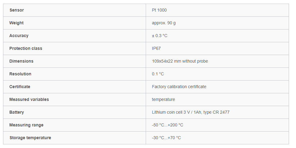 • Complete with Pt1000 pointed probe (L = 120mm, ø 3mm )