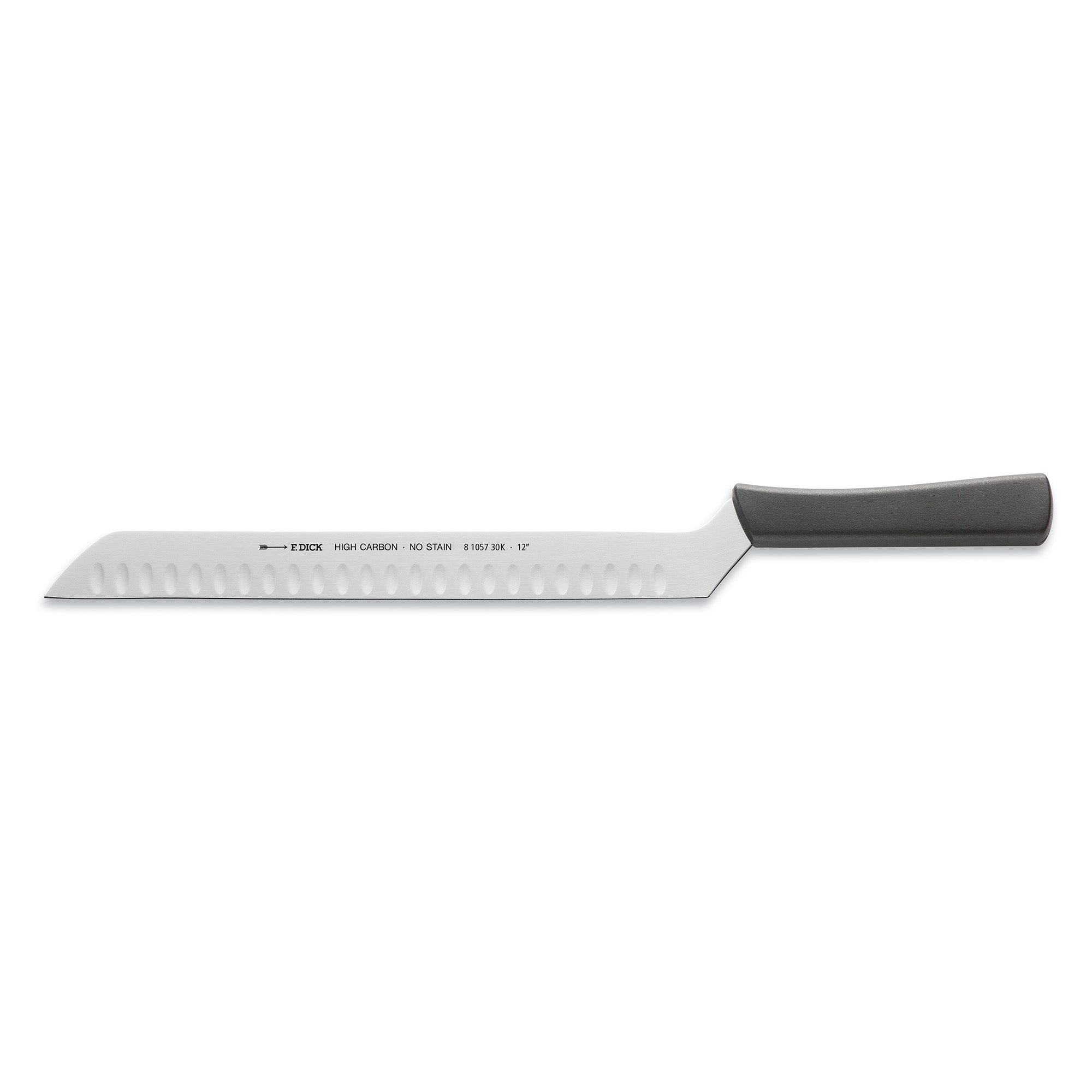 The F.Dick Cheese Knife is an essential tool for any food enthusiast. With a sturdy 30cm blade, it effortlessly slices through hard cheeses, providing clean and precise cuts every time. Its innovative design minimises crumbling, ensuring beautifully presented portions on your cheese boards. This larger cheese knife is designed for use with large cheese wheels, making cutting through a breeze. The wide, sharp blade also allows easy portioning of hard cheeses, offering versatility in your cheese preparation.