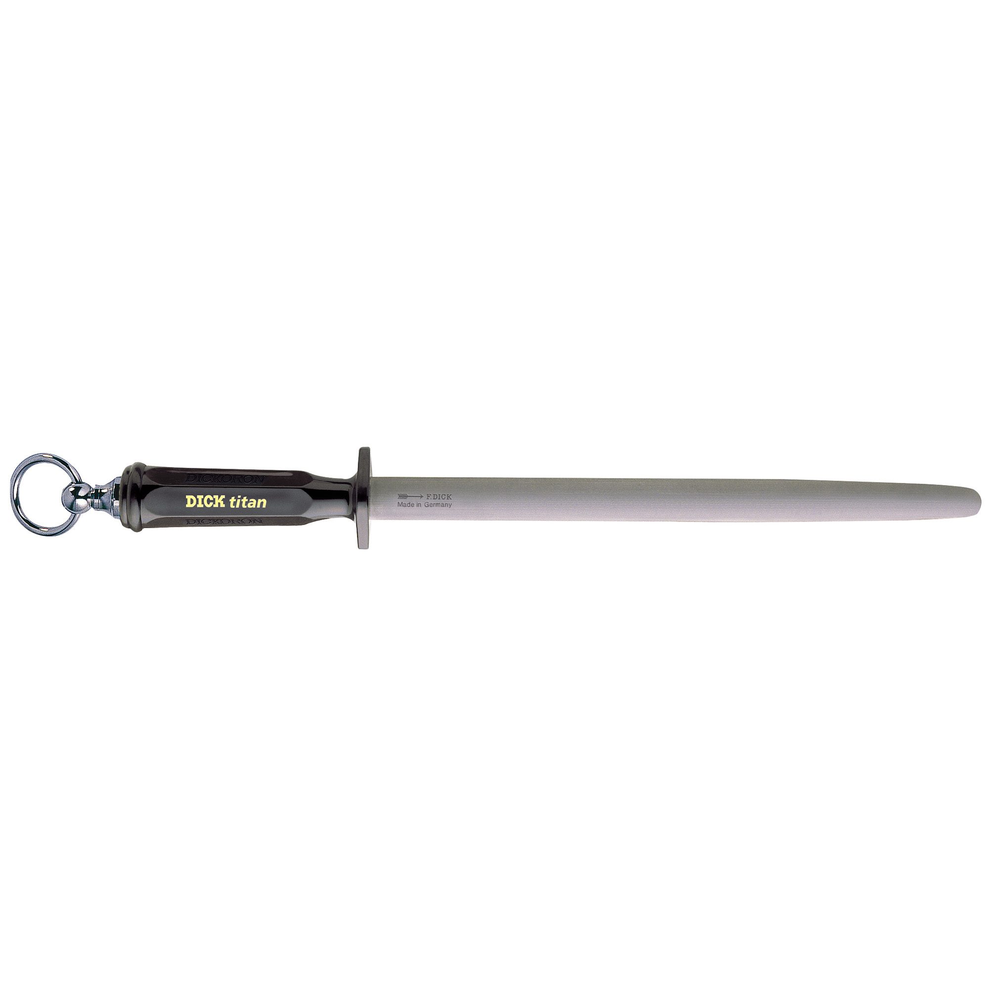 The F.Dick DICKORON TITAN 12″ Oval Sharpening Steel has a revolutionary special coating, which sets it apart from traditional sharpening steels. This wear-resistant, ultra-hard coating makes the steel 3x harder than standard sharpening steels, ensuring longevity and durability even under heavy use. This makes it an ideal choice for sharpening knives with high hardness.