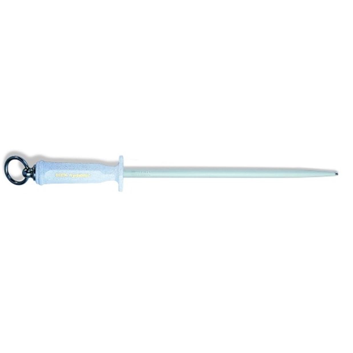 The F.Dick DICKORON HYGIENIC Sharpening Steel, Ultra Fine Cut, 12″ Round is designed with an oval surface area that is perfect for honing knives of all sizes, ensuring the blade’s edge is expertly realigned for optimal sharpness and performance after each use.