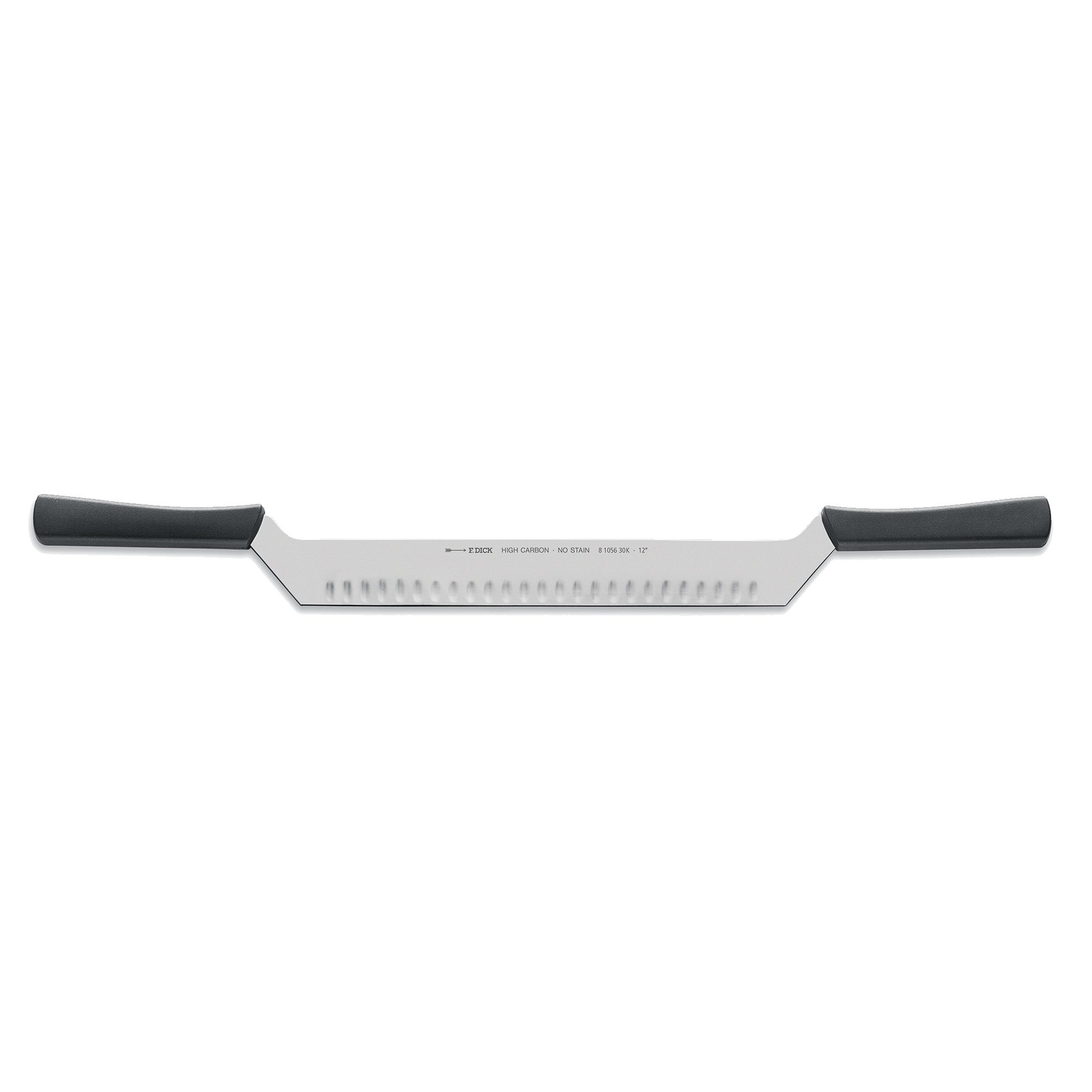 The F.Dick Double Handed Cheese Knife is a must-have for any food enthusiast. With a robust 30cm blade, this knife effortlessly slices through larger cheese sections, delivering clean and precise cuts every time. Its innovative design minimises crumbling, allowing for beautifully presented portions on your cheese boards. This larger cheese knife is designed for use with large cheese wheels, making cutting through a breeze.