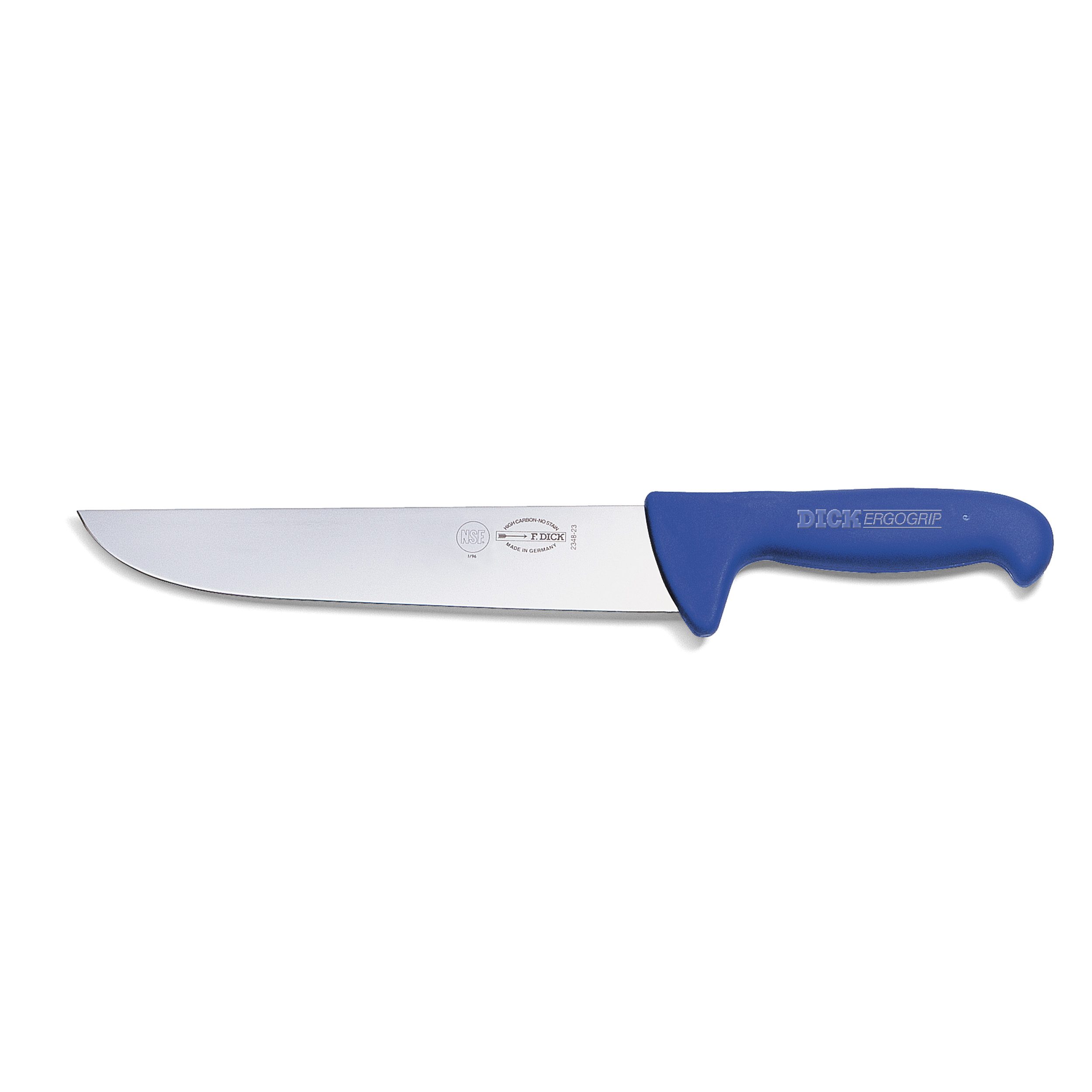 The F. Dick ErgoGrip Butcher Knife features a 21cm blade, expertly crafted for professionals in the meat industry. Designed with an ergonomic handle and a precision blade, the butcher knife ensures smooth and effortless breaking, slicing, and trimming of meat. Known for its exceptional cutting edge and durable construction, it is ideal for slicing through large meat carcasses or breaking down big cuts into smaller portions. This knife excels in demanding environments and is commonly used by butchers, knife hands, chefs, and hunters.