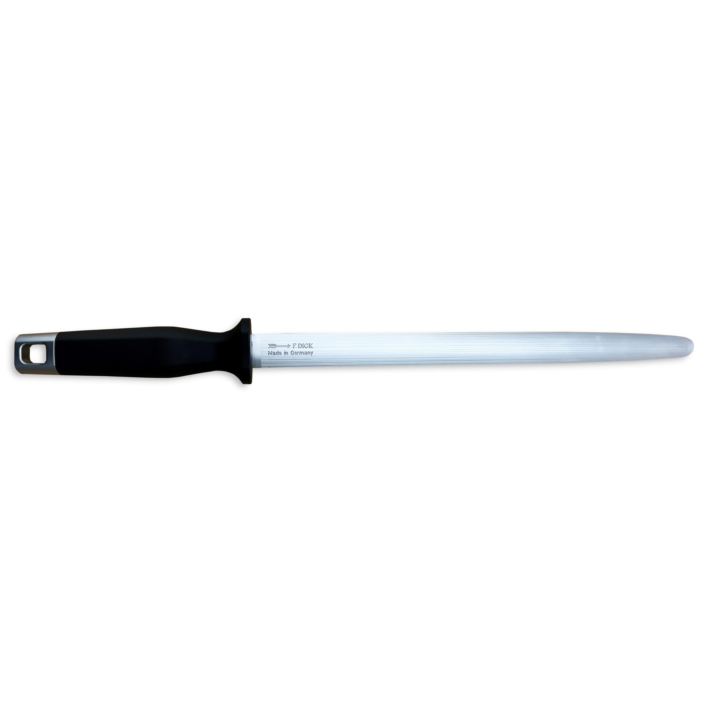 The F. Dick Butcher Sharpening Steel, Regular Cut, 12″ Oval made from high-quality German steel, provides ample surface area for sharpening knives of all sizes, from delicate paring knives to sturdy chef’s blades. Its finely grooved regular cut surface effectively realigns the blade’s edge, ensuring optimal sharpness and performance with every use. Engineered for comfort, the ergonomic handle offers a secure grip and enables precise control during sharpening.