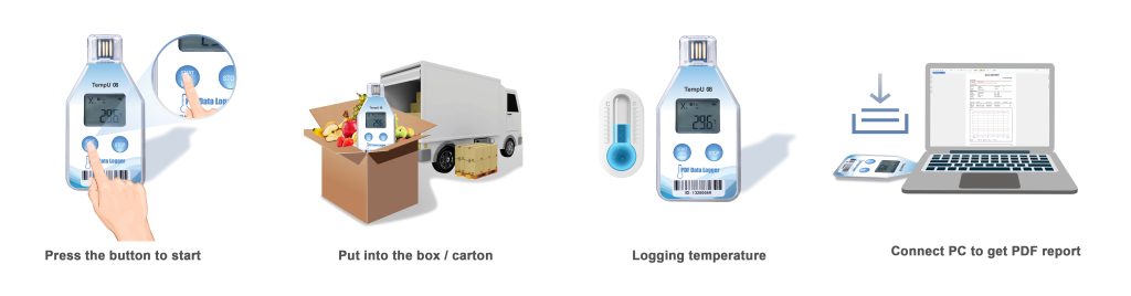 The TempU08 disposable temperature data recorder is a small, portable device with an LCD screen that is ideal for use in the cold chain. This device is primarily used to monitor and record temperature data in the storage and transit of food, medicine, chemical goods, and other items. It’s utilised in everything from refrigerated containers to refrigerated trucks to refrigerated distribution boxes in the warehousing and logistics cold chain including cold storage, laboratories and so forth. The USB interface can be used to read data and configure parameters without the use of software. The PDF report can be created quickly and automatically after being inserted.