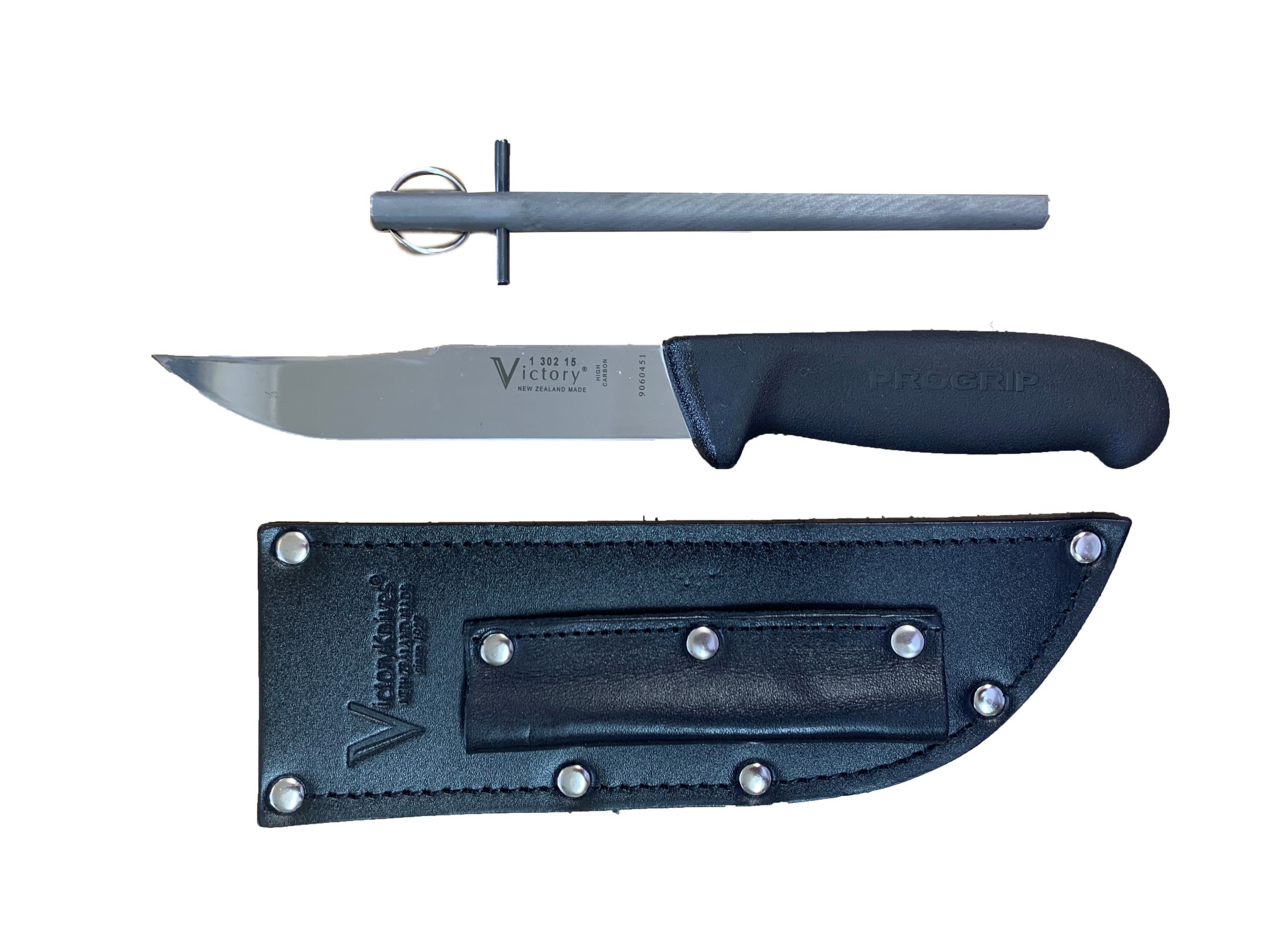 The Victory Hunting Knife Set is ideal for farmers, hunters, fishermen, and outdoor enthusiasts. Crafted from premium quality carbon, this hunting knife is proudly made in New Zealand using the highest quality German steel. Its robust construction ensures durability and reliability in various outdoor tasks.